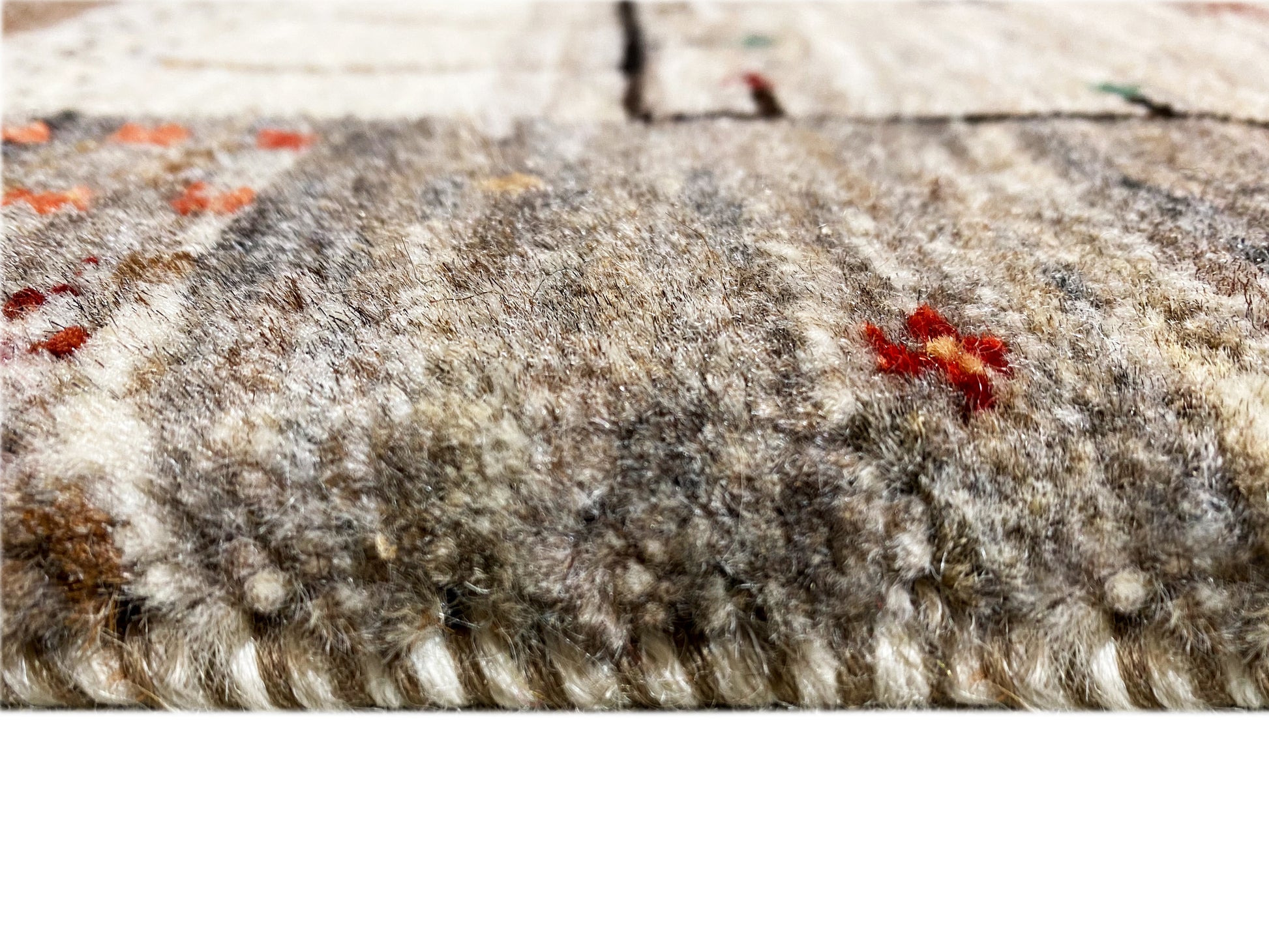 Dieser handgeknüpfte Gabbeh Läufer Teppich in Beige überzeugt mit natürlicher Eleganz und langlebiger Qualität. Aus handgesponnener, pflanzengefärbter Wolle gefertigt, bietet er ein angenehm weiches Laufgefühl und ist ideal für Flur, Diele oder lange Räume. Das schlichte, moderne Boho-/Minimal-Decor wird durch feine, kleine Akzente im dezenten Streumuster stilvoll ergänzt. Mit der Größe 506 x 79 cm setzt er eine ruhige, hochwertige Note und passt perfekt zu modernen sowie skandinavischen Einrichtungen.