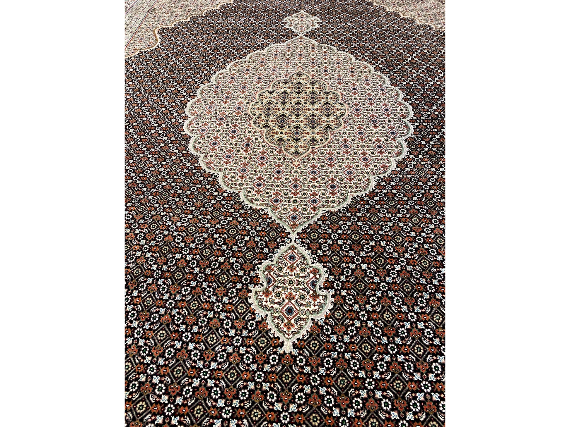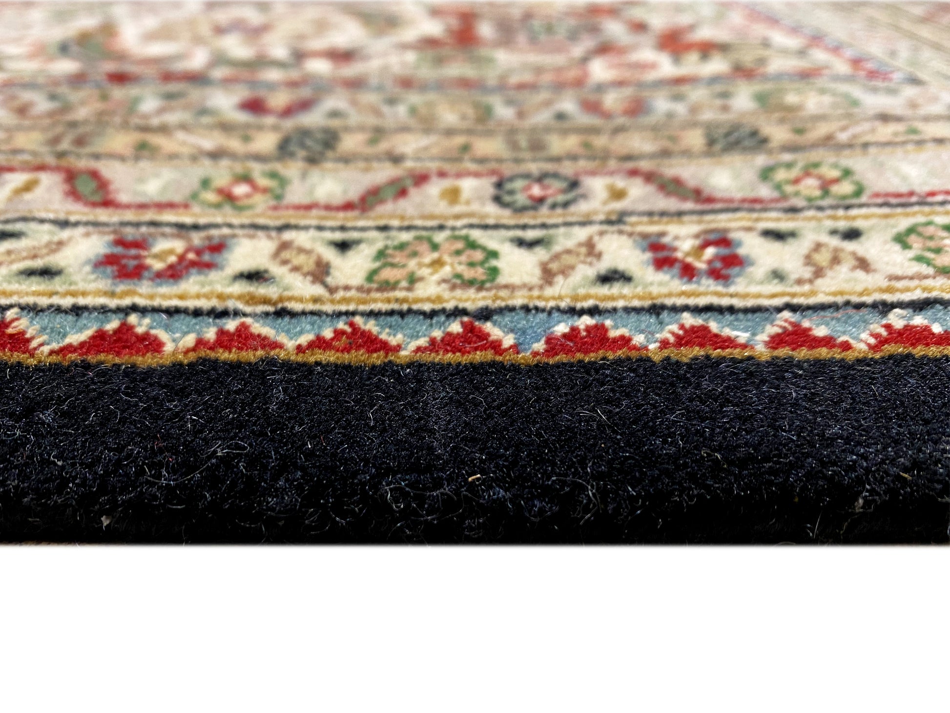 Ursprünglich kommt der Tabriz Teppiche aus dem Nord-western Persiens. Mittlerweile werden diese Teppiche jedoch auch mit derselben Qualität Standards in Indien handgeknüpft. Unsere Tabriz sind hochwertige, edle Teppiche, die aus feiner Wolle und Viskose geknüpft werden. Die Teppiche haben kräftige, klare und tiefe Farben und sind, aufgrund ihrer guten Verarbeitung, sehr strapazierfähig.