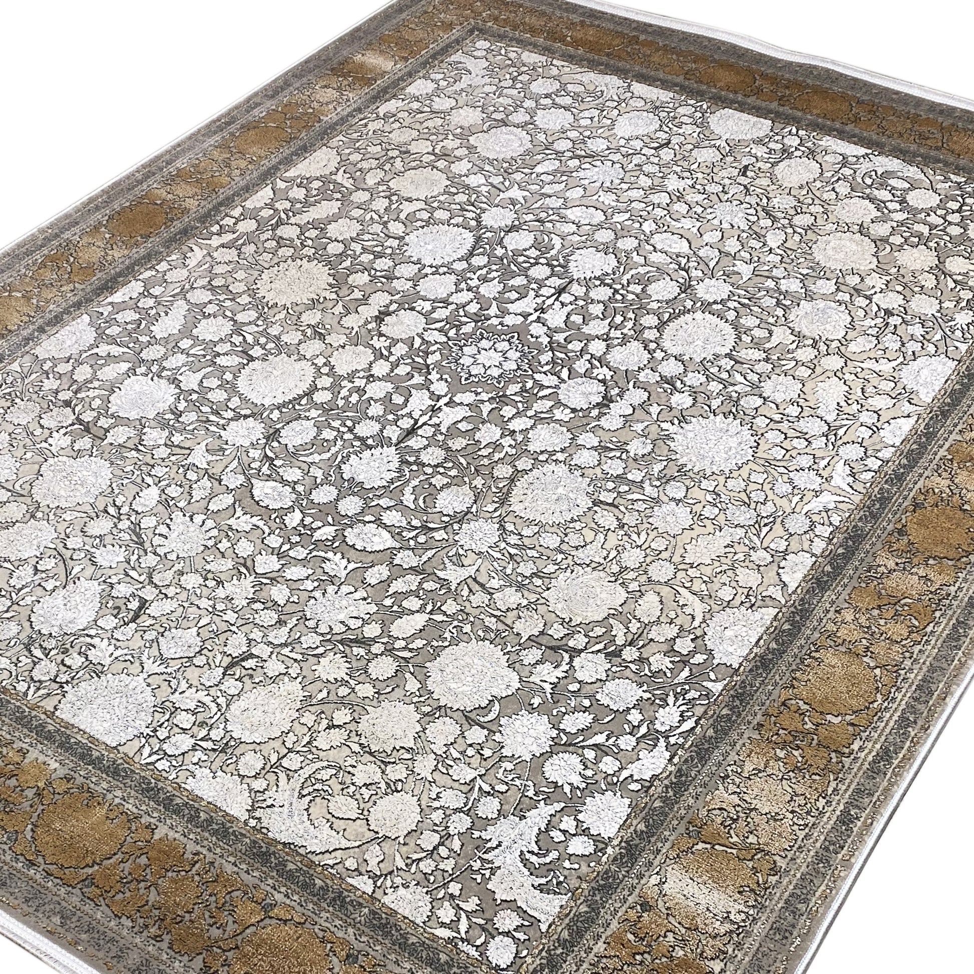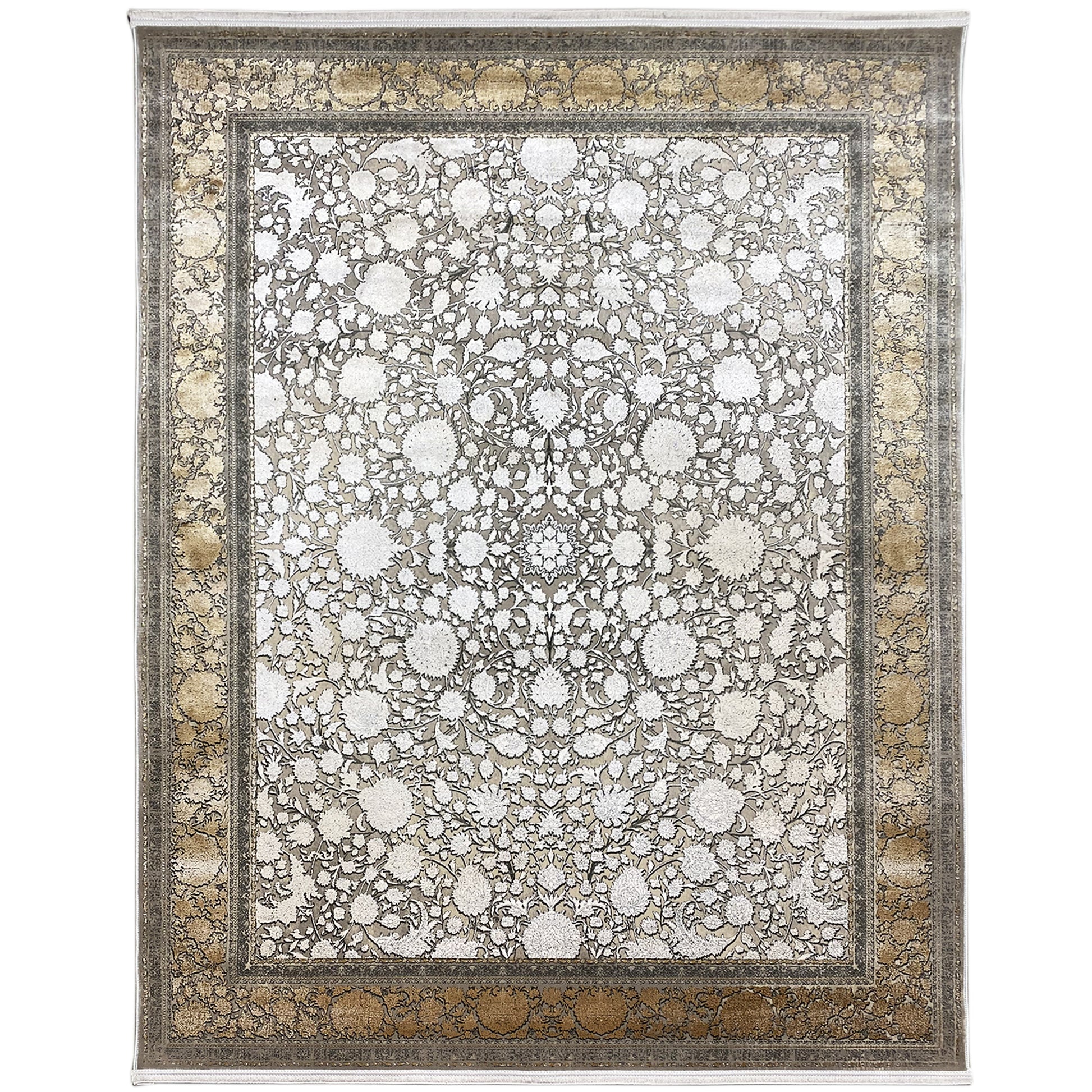 Verleihen Sie Ihrem Zuhause einen Hauch von zeitloser Eleganz mit diesem wunderschönen klassischen Teppich. Sein atemberaubendes durchgehendes Blumenmuster in schimmernden Silber- und Goldtönen schafft ein Gefühl von Luxus und Tiefe. Gefertigt aus 100% hitzebehandeltem Acryl, ist dieser weiche und strapazierfähige Teppich perfekt für stark frequentierte Bereiche und verbindet exquisiten Stil mit moderner Widerstandsfähigkeit. Die großzügige Größe von 170x240cm ist ideal, um Ihrem Wohn-, Schlaf- oder Esszimmer einen raffinierten Blickfang zu verleihen.